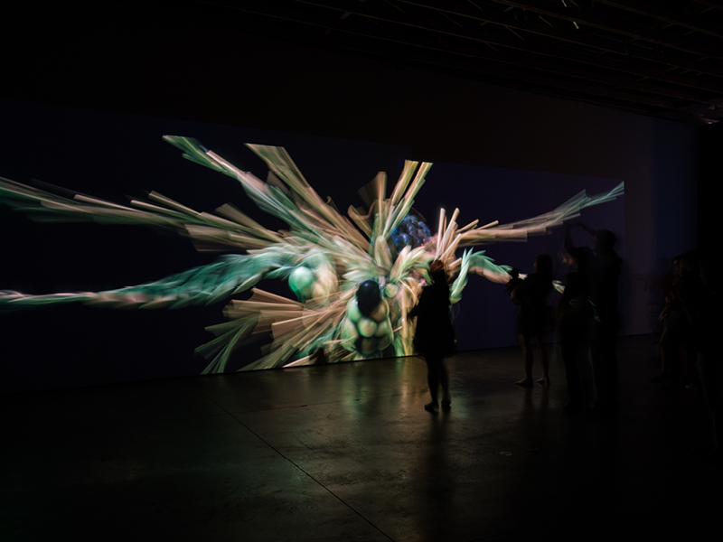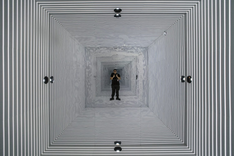 Entrainment 718 by Phoenix-based artist Shomit Barua explores spatial and temporal perception through video and sound techniques.