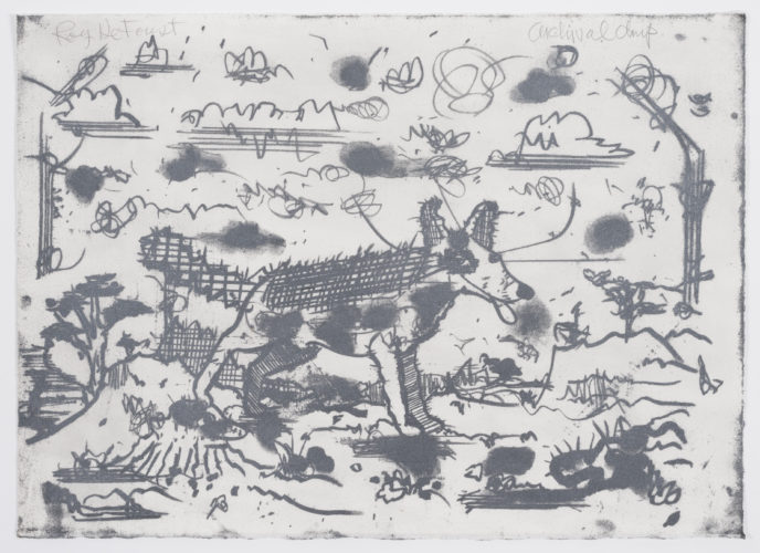 Rich with myriad details and varied textures, the surfaces of Leslie Shows’s collaged paintings reward careful study. In them, one might find rust, plexiglass, mylar, acrylic paint, mica, magazine cutouts, crushed glass, mud, ink, sand, and engraved aluminum. An avid researcher and expansive thinker, Shows rigorously and creatively explores the fluid dynamics of our material […]