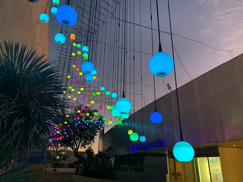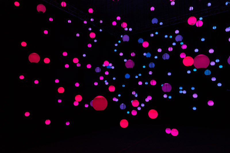 Enter Infinite and be surrounded by hundreds of illuminated spheres that form a symphony of notes.