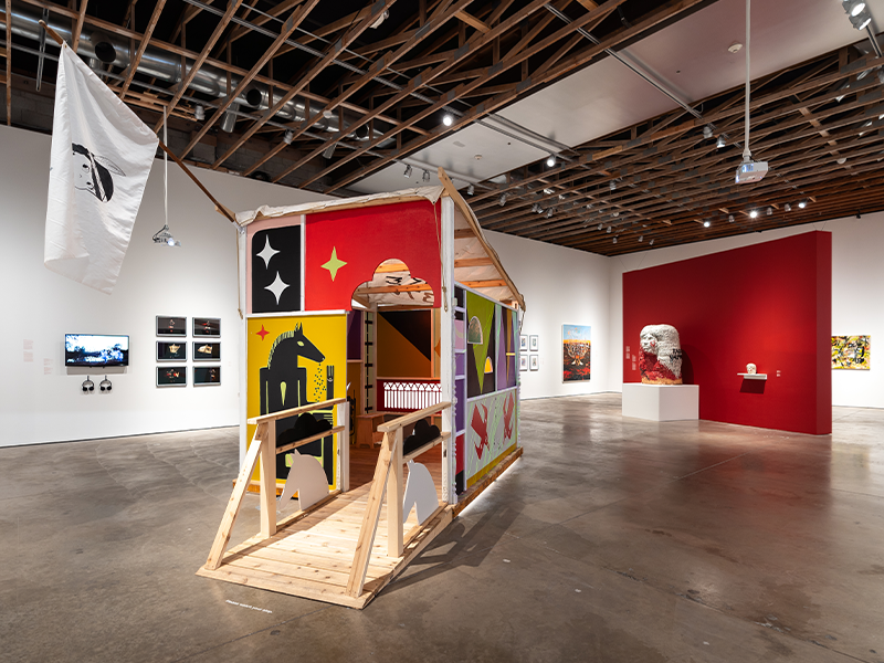 Exploding Native Inevitable is an exhibition of the work of twelve contemporary Indigenous artists and two collaboratives, accompanied by a program of dance, film, music, performance, readings, storytelling, and video by Indigenous artists from a land we now call America.